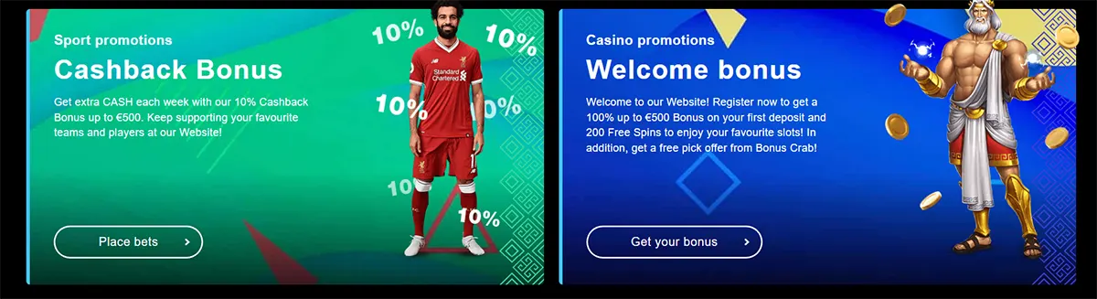 New players receive a 100% match bonus up to €500 plus 200 free spins upon registration and first deposit. This welcome bonus requires a minimum deposit of €10 to activate.