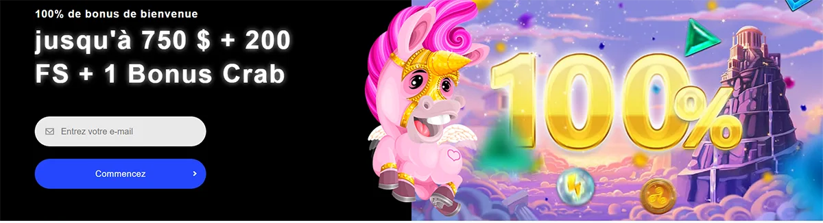 Notre offre de bienvenue se compose d'un bonus de 100% jusqu'à 500€ plus 200 free spins sur votre premier dépôt minimum de 20€. Les conditions de mise s'élèvent à x35 pour le bonus et x40 pour les tours gratuits.